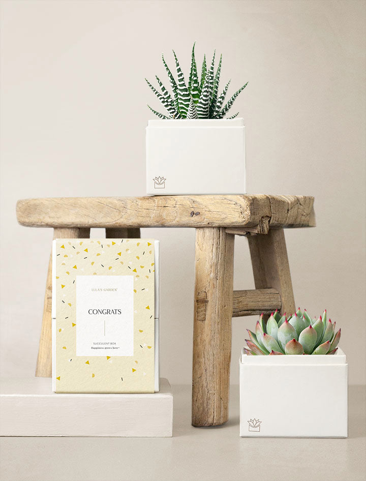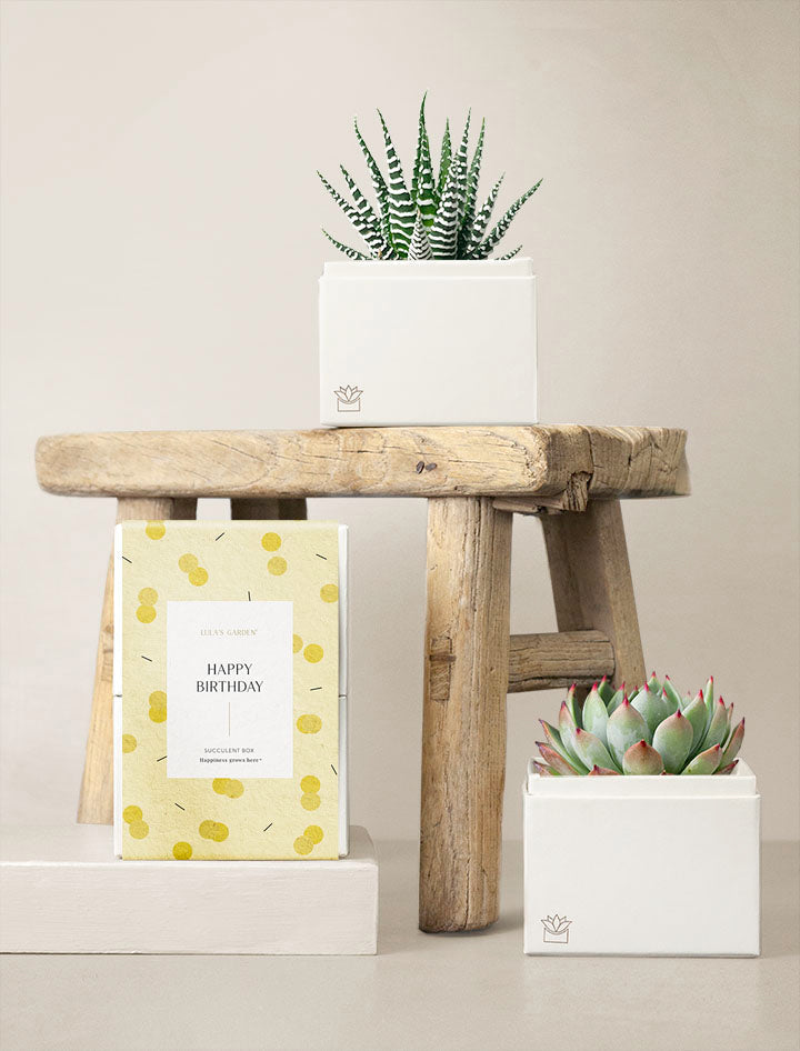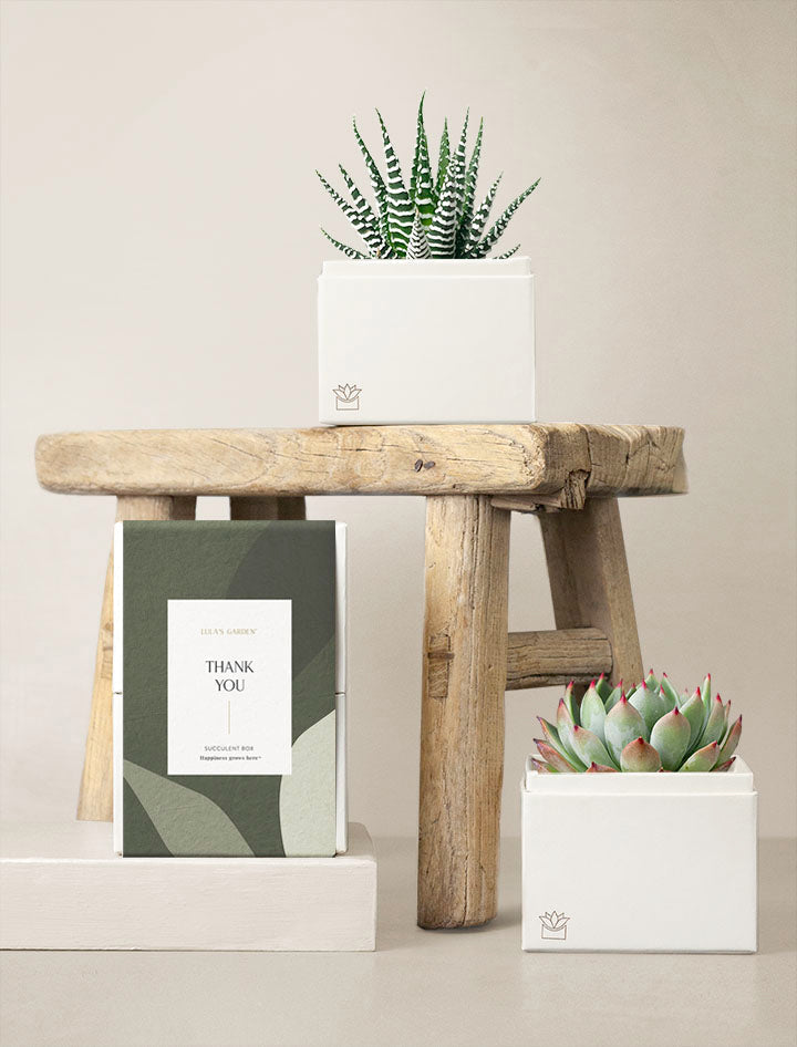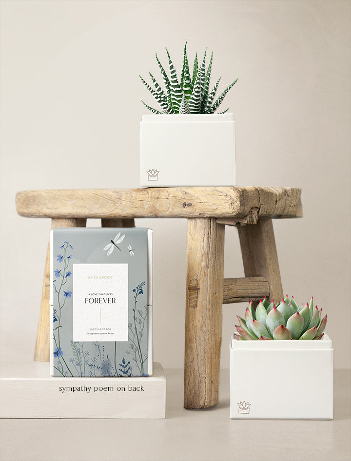 Fresh succulent gardens arrive in beautifully crafted planter gift boxes - ready to display and enjoy.