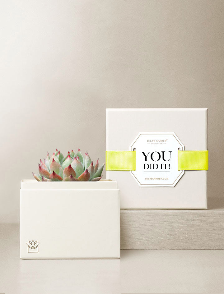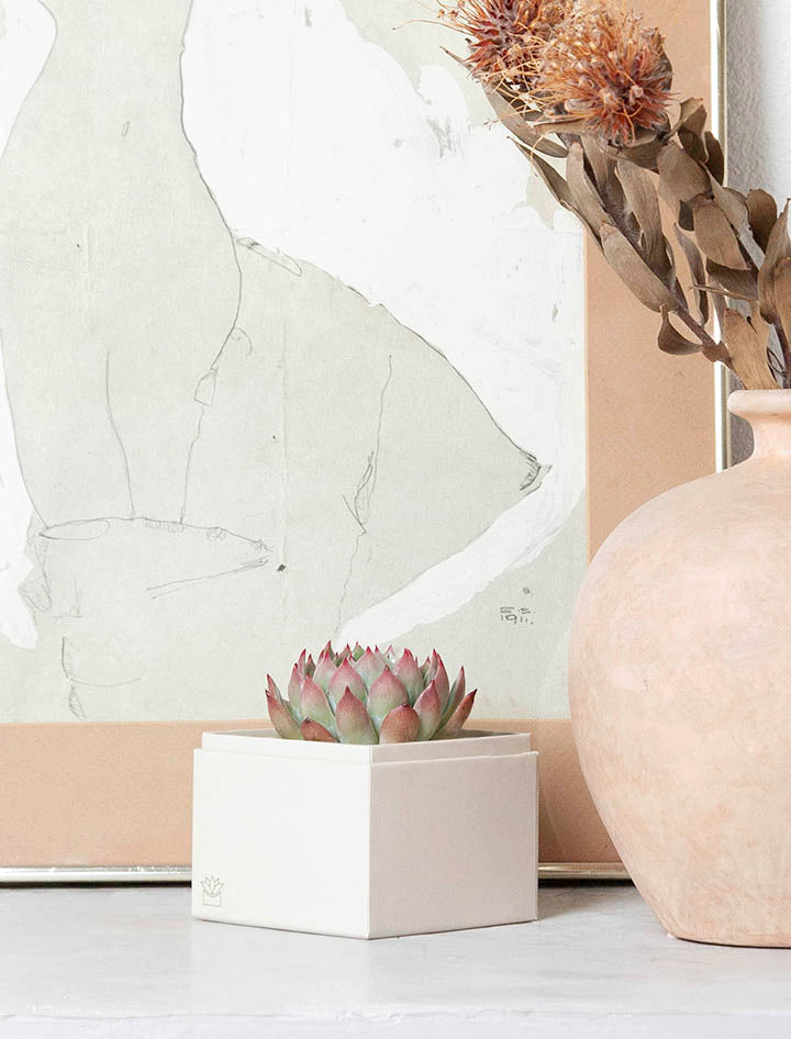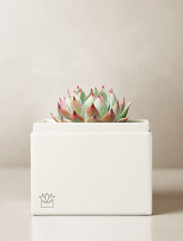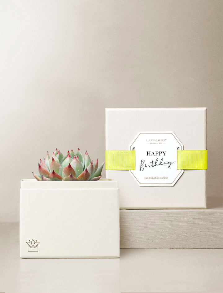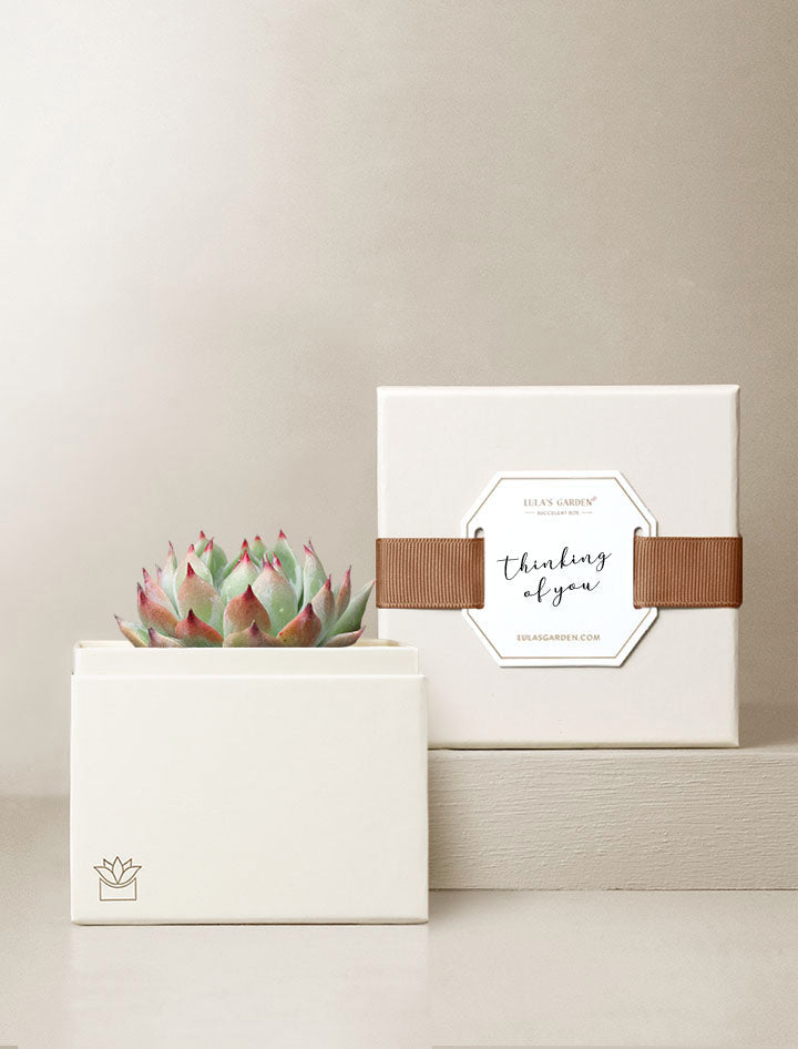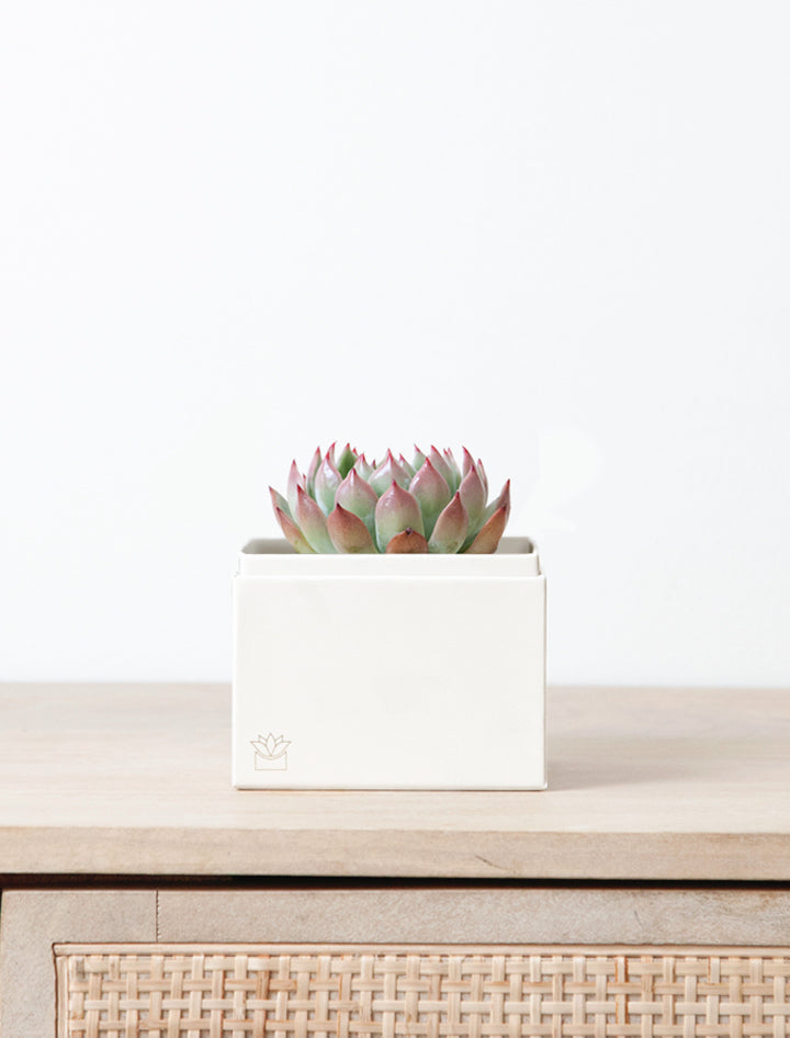 Fresh succulent garden arrives in a beautifully crafted planter gift box - ready to display and enjoy.